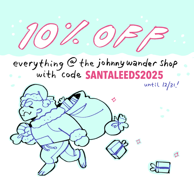 It's that time of year, so we're here with a holiday discount code for our store! You can use code SANTALEEDS2025 at checkout to get 10% off whatever you like from the Johnny Wander store! Head on over to CRWN to check it out!