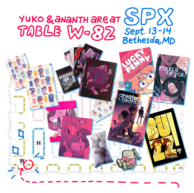 Hi everyone! We're going to be at SPX this coming weekend, Sept 13-14th! You can find us at table W82! We'll have a new print and stickersheet, along with many of our books and other things! See you there!